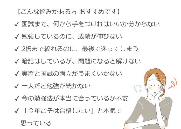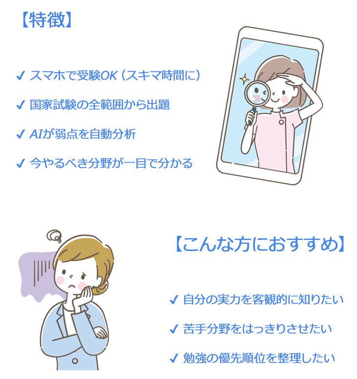毎週末、国家試験形式の「無料実力テスト」を実施しています。