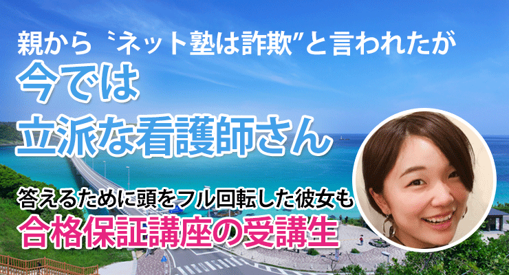専門学校、現役、答えるために頭をフル回転 続きは 専門学校、現役、学年1位になった社会人学生 続きは 専門学校、既卒、D判定からのリベンジ合格 続きは 大学、現役、クラス最下位からのスタート 続きは 専門学校、現役、毎週自分の成長を感じた 続きは 専門学校、現役、准看護師歴32年のベテラン学生 続きは 専門学校、現役、できる看護師になりたくて 続きは 専門学校、既卒、一般・状況-2点の不合格から 続きは 5年一貫、既卒、D判定からのスタートで 続きは 専門学校、現役、ネットなら予備校がなくても 続きは 通信制、既卒、80歳の母の協力もあり 続きは 通信制、現役、努力は報われないことも 続きは 5年一貫、現役、本番250点超え 続きは 短大、既卒、ネット授業の不信感があった 続きは 大学、現役、音読が苦手な女子大生 続きは ご不明な点は、お気軽にお問合せください。