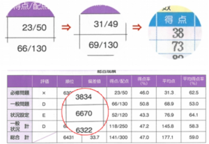 必修問題は、1回目の模試では23点、2回目では31点、3回目では38点と着実に得点が上がってきました。